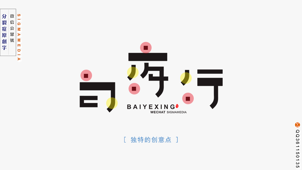 离意的思路不是说开始设计后才思考怎么设计,而是在动手设计前就开始有这种思路。它不着眼于某个笔划或某个字怎么设计,而更在乎你的设计怎么能更有创意,怎么能出人意料让人发出“咦”的欣喜。