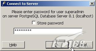 右键点击PostgreSQL Database Server 8.1(localhost:5432),点击连接(connect),由于我在pg_hba.conf中设置本地连接也要通过密码,弹出如下对话框。