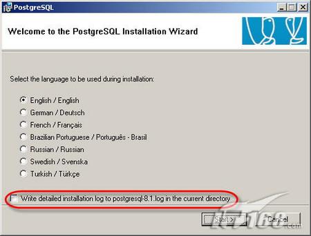 首先是选择安装过程中使用的语言,笔者找了一边没有找到中文,只好选择还能看得懂得英文^_^。另外,你可以选择最下面得选项以把详细的安装日志写到当前安装目录,以备排查安装故障,也可以阅读一下了解它的安装过程。