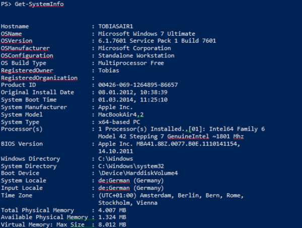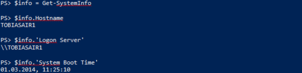 $header = 'Hostname','OSName','OSVersion','OSManufacturer','OSConfiguration','OS Build Type','RegisteredOwner','RegisteredOrganization','Product ID','Original Install Date','System Boot Time','System Manufacturer','System Model','System Type','Processor(s)','BIOS Version','Windows Directory','System Directory','Boot Device','System Locale','Input Locale','Time Zone','Total Physical Memory','Available Physical Memory','Virtual Memory: Max Size','Virtual Memory: Available','Virtual Memory: In Use','Page File Location(s)','Domain','Logon Server','Hotfix(s)','Network Card(s)'
