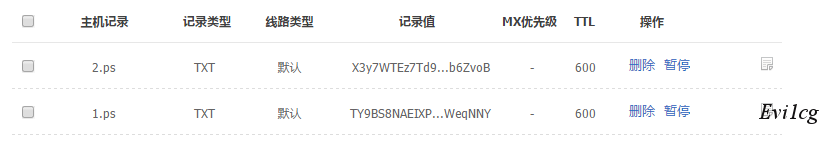 由于TXT记录长度限制为255,如果要添加一个脚本到记录里面,需要添加多个TXT记录。下面是一个例子,自己写了一个PSH脚本: