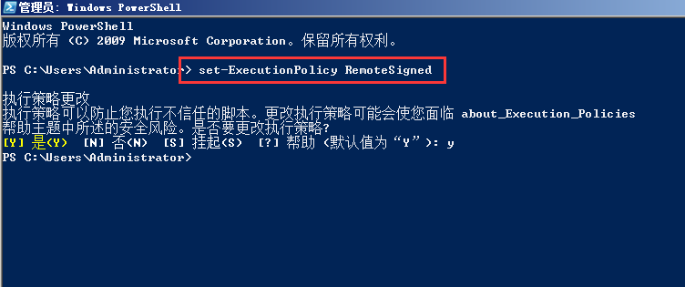 在powershell中执行 set-ExecutionPolicy RemoteSigned