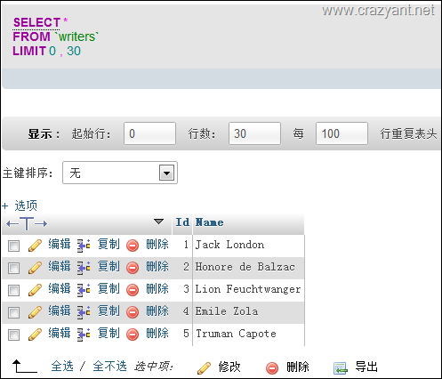 #创建一个数据表 writers(id,name)
