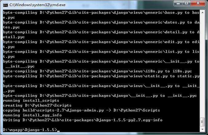 1,解压后(我的目录是D:\myapp\Django-1.5.5)