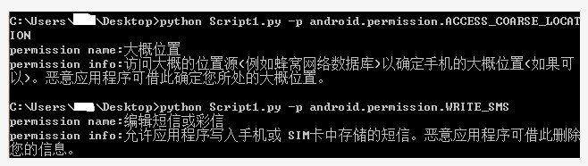 print "permission name:%s\npermission info:%s" %(permission.values()[3],permission.values()[0])
