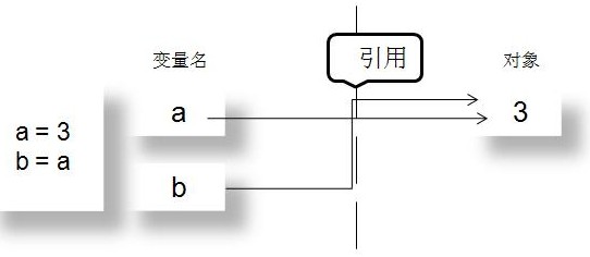 变量名和对象,在运行赋值语句b = a之后,变量a,b都指向了对象3的内存空间.