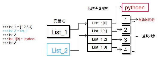从我的理解上来解释的话: list是一个类型对象,而对象里的每一个元素可以看成是变量,去引用了不同内存空间的对象list_1 = [1,2,3,4]是让list_1指向list的内存空间,list_2 = list_1时,他们将指向同一个内存空间。当List_1[0]改变指向时,list_2依然指向list对象的,所以看是改变list_1[0]的值,实际上是python通过list_1直接到内存空间去做了修改,list_2的指向没有任何变量。