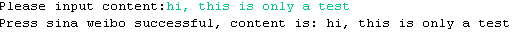 print "Press sina weibo successful, content is: %s" % status.text