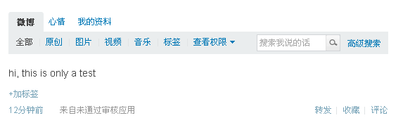 4、微博发送成功效果: