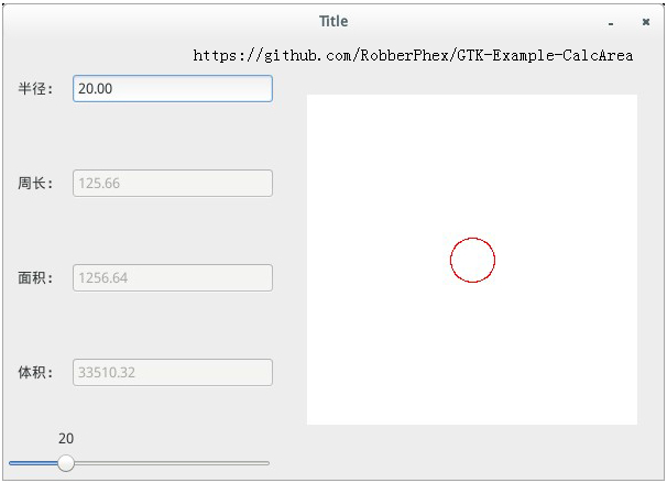 输入半径,计算圆的周长、面积、球体体积,并画出这个圆。