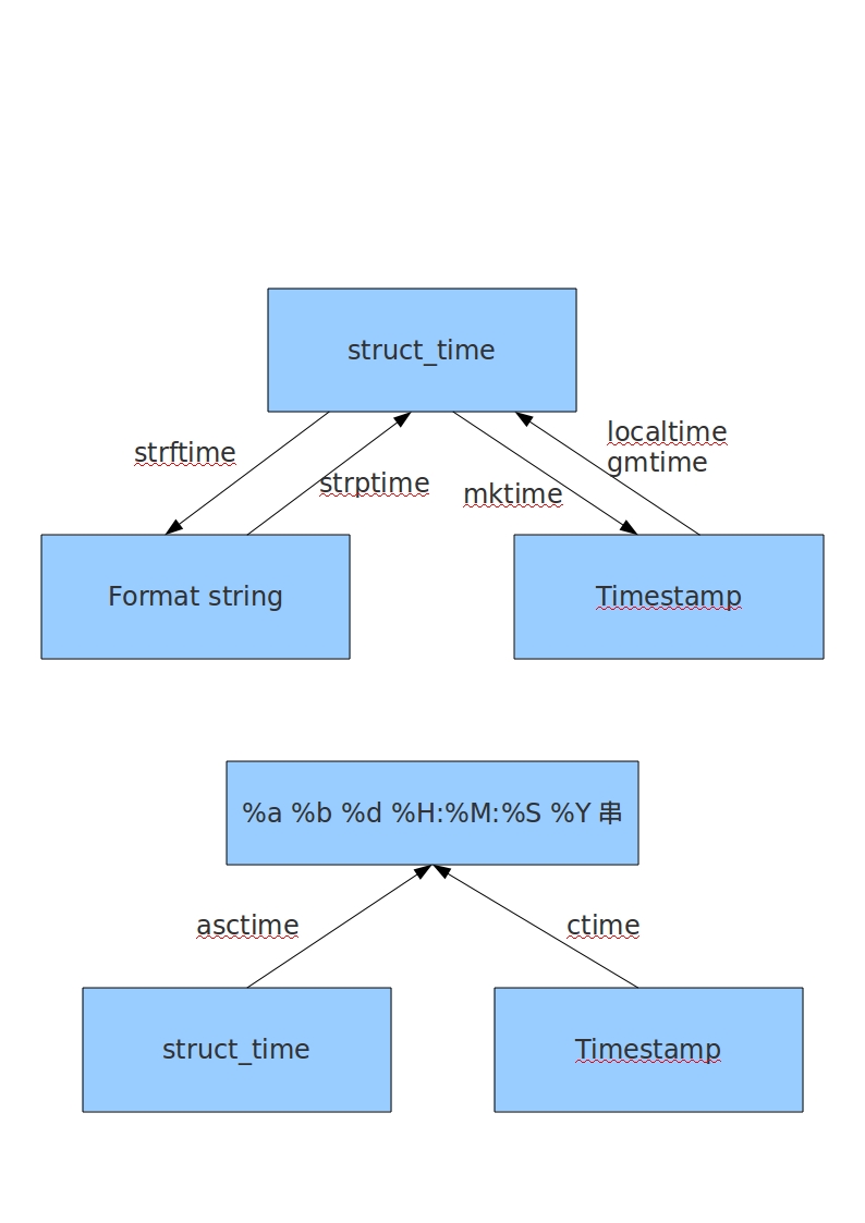 最后,我们来对time模块进行一个总结。根据之前描述,在Python中共有三种表达方式:1)timestamp 2)tuple或者struct_time 3)格式化字符串。