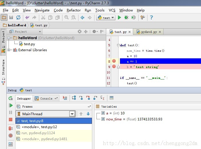 这就是PyCharm的断点功能,还是很简单易用的。
