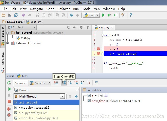 点击Step Over 或者按F8,我们继续往下运行,到下一个断点: