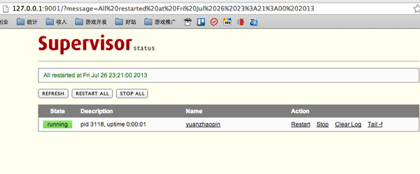 但是有好处就有坏处,用了supervisor之后,就不能自己随便的去自己重启服务了,否则会影响supervisor的监控,这对我这种喜欢自己执行 xx.sh restart 的人实在有点太痛苦了。当然,其实要是习惯了去supervisorctl 里面start/stop/reload 之后也就还好了。