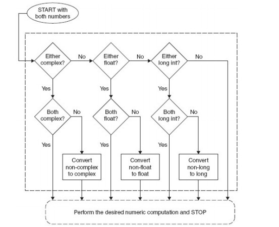 这些类型转换的基本原则是: 整数转换为浮点数,非复数转换为复数。在 Python 语言参考中这样描述coerce()方法:
