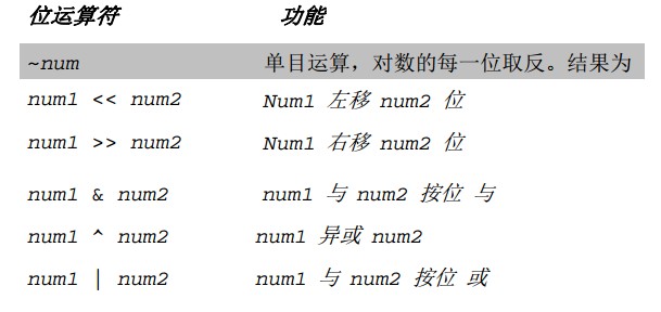 对长整数来说, 位运算符使用一种经修改的2进制补码形式,使得符号位可以无限的向左扩展。取反(~)运算的优先级与数字单目运算符相同,是所有位操作符中优先级最高的一个。左移和右移运算的优先级次之,但低于加减法运算。与,或,异或运算优先级最低。所有位运算符按优先级高低列在表 5.4