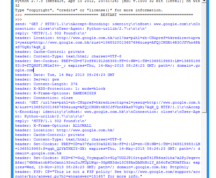 使用 urllib2 时,可以通过下面的方法把 debug Log 打开,这样收发包的内容就会在屏幕上打印出来,方便调试,有时可以省去抓包的工作