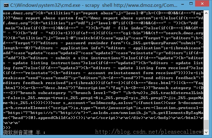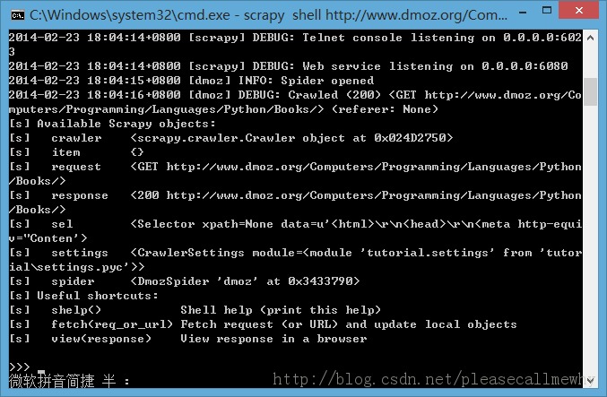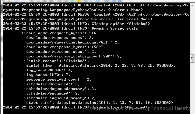包含 [dmoz]的行 ,那对应着我们的爬虫运行的结果。