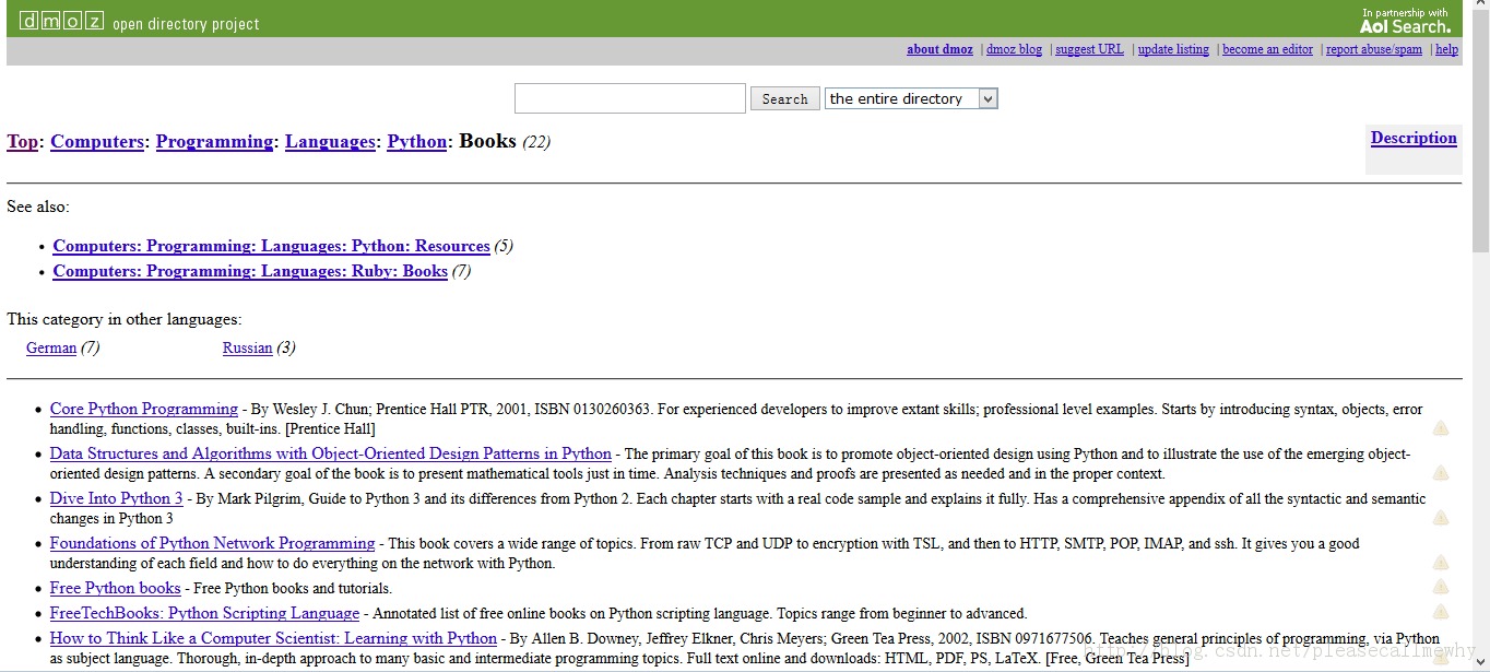 实验的网址:http://www.dmoz.org/Computers/Programming/Languages/Python/Books/