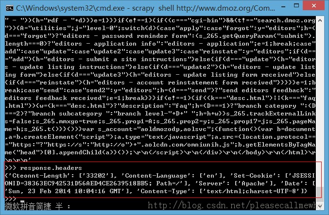 所以如果你输入response.body,你将会看到response的body部分,也就是抓取到的页面内容: