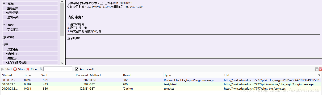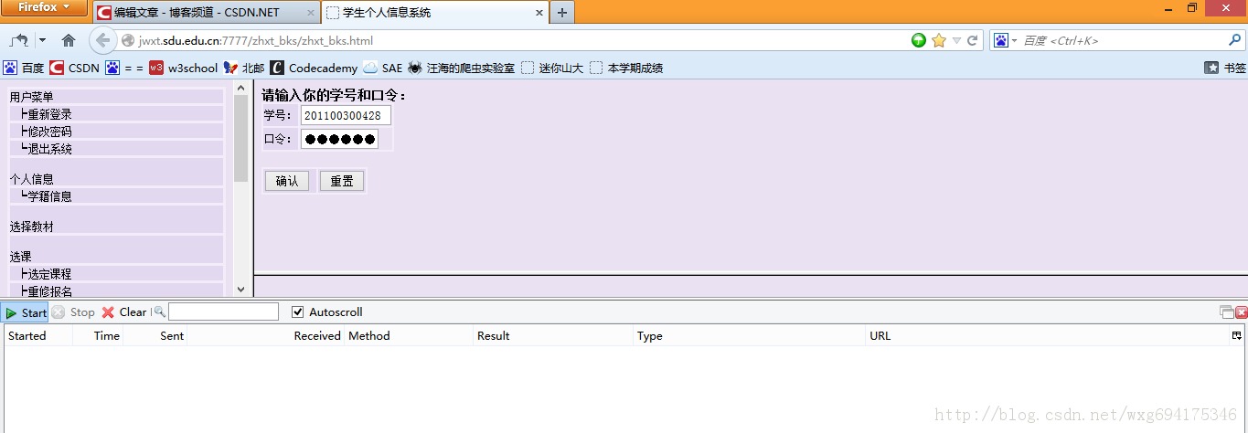 下面就去山东大学的成绩查询网站,看一看在登录的时候,到底发送了那些信息。