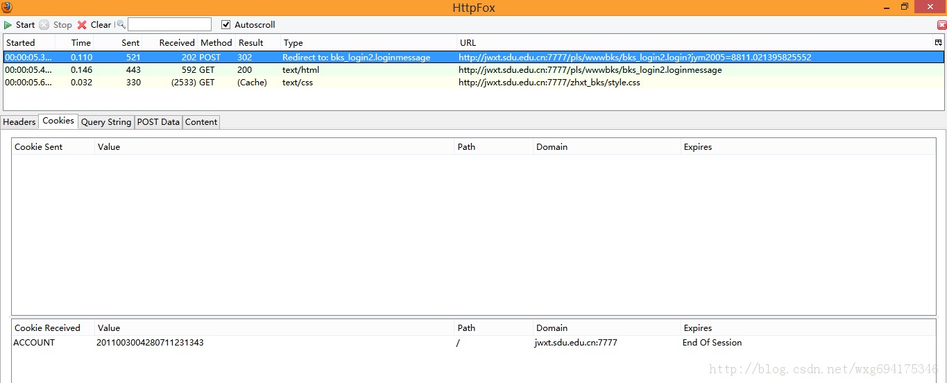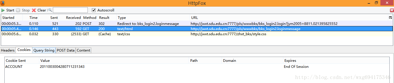 开启HTTPFOX之后,点击查看成绩,发现捕获到了如下的数据: