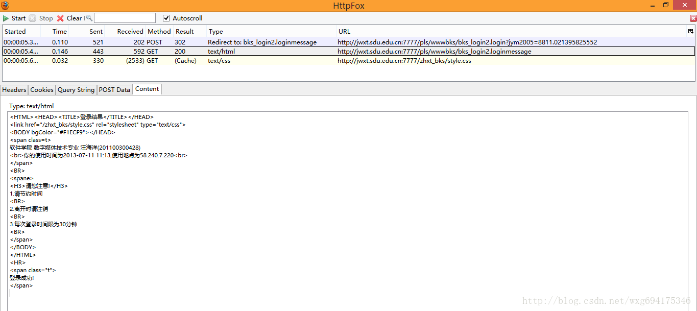 输入完了个人信息,确保httpfox处于开启状态,然后点击确定提交信息,实现登录。