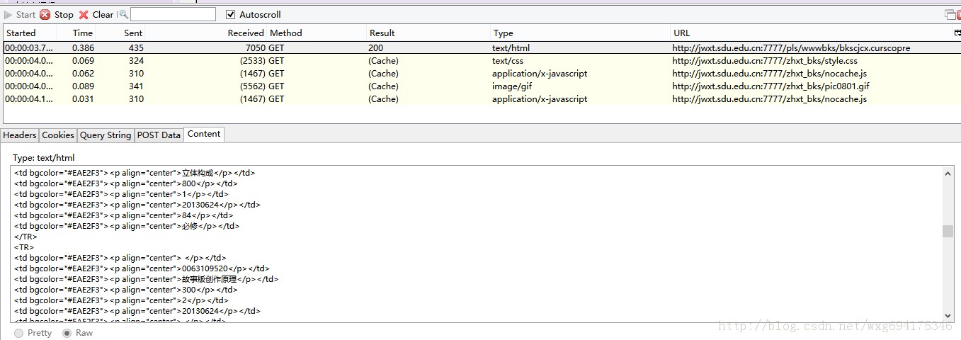 点击第一个GET的数据,查看内容可以发现Content就是获取到的成绩的内容。