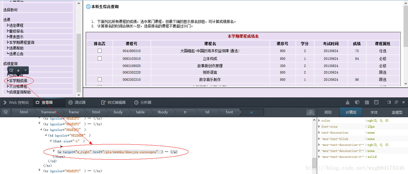 现在万事俱备啦,所以只需要把链接应用到爬虫里面,看看能否查看到成绩的页面。