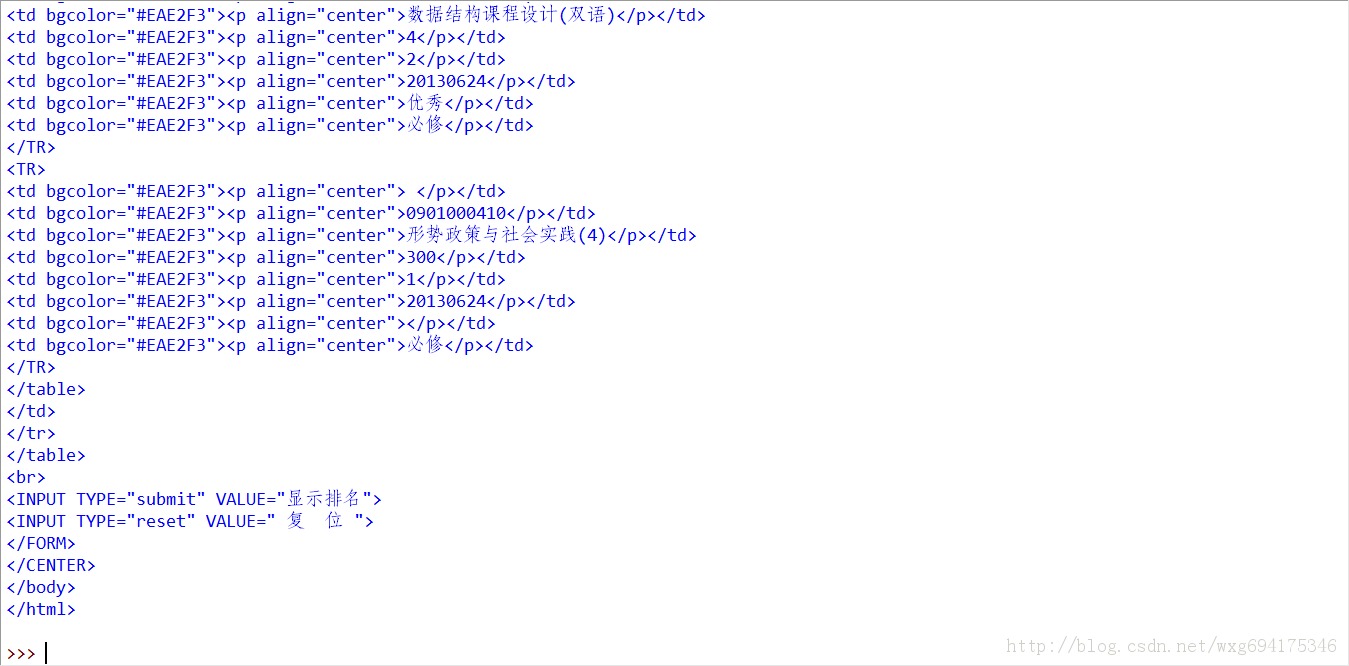 既然这样就没有什么问题了吧,用正则表达式将数据稍稍处理一下,取出学分和相应的分数就可以了。