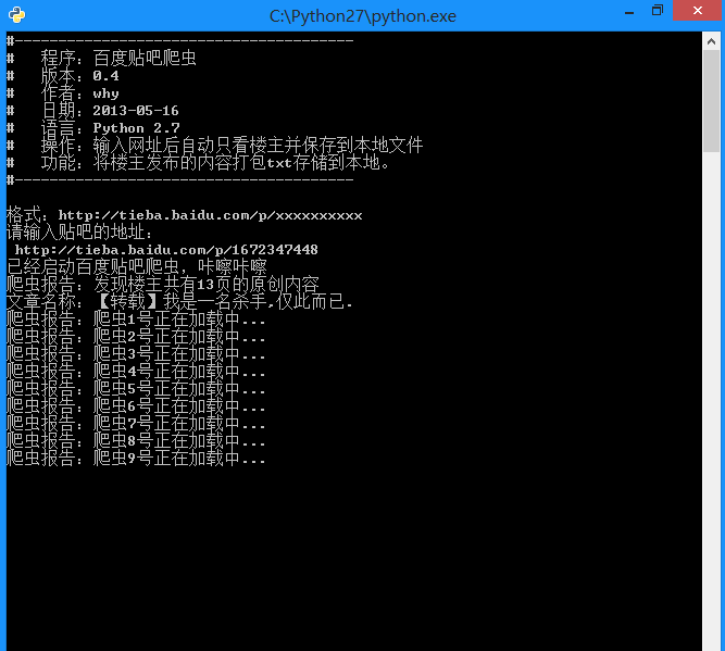 print u'已经启动百度贴吧爬虫,咔嚓咔嚓'