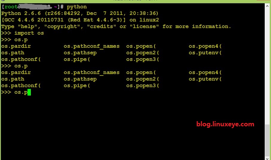 重新登陆shell,输入python命令进入交互模式,就可以用Tab键进行补全。如下图: