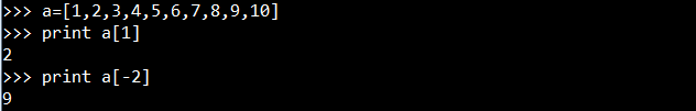 请注意一点:编号从0开始递增指的是列表中元素从左往右而言,最后一个元素就是列表中倒数第一个元素,所以Python就提供了这样一种机制,可以通过编号为负数来访问列表,如果编号为-2,就表示访问的是列表中倒数第二个元素。