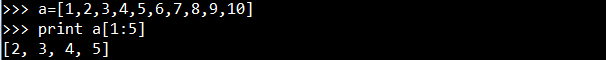 分片通过冒号相隔的两个索引来实现,第一个索引是需要提取部分的第一个元素的编号,第二个索引是需要提取的连续区间最后一个元素的下一个元素在列表中的编号。简而言之,就是左闭右开的思想。