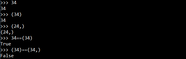 注意一点:用元组存储一个元素的时候我们需要在唯一的这一个元素后面多加一个逗号。因为34和(34)在Python中是一样的,所以(34)不能表示为元组,而(34,)才是元组。