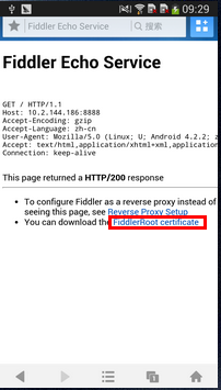 使用Android手机的浏览器打开:http://192.168.1.96:8888, 点"FiddlerRoot certificate" 然后安装证书,如图: