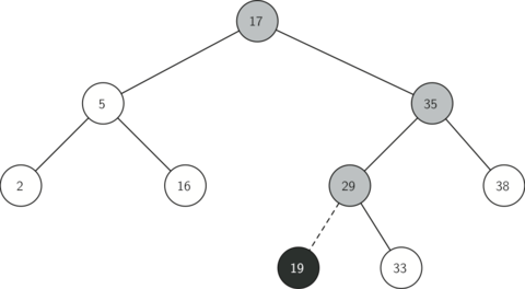 图 2 说明了将新节点插入到一个二叉搜索树的过程。灰色节点显示了插入过程中遍历树节点顺序。