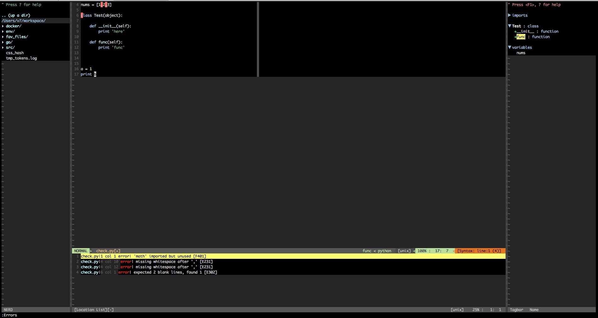 运行下面两个命令,即可把 Vim(含插件)配置成 Python IDE。目前支持 MAC 和 Ubuntu。