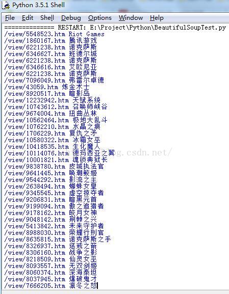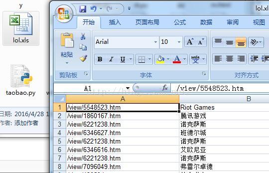 关于BeautifulSoup的具体使用,在以后的文章中再写。下面的代码使用python抓取百度百科中英雄联盟词条中的其他与英雄联盟相关的词条,并将这些词条保存在新建的excel中。上代码: