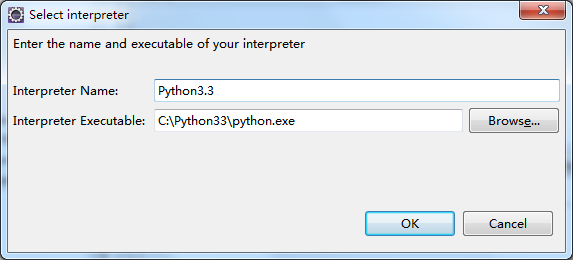 4.4 输入Python解释器的名称与python.exe地址,点OK确定