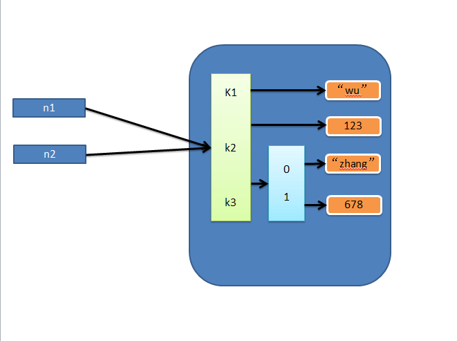 n1 = {"k1": "zhangyanlin", "k2": 123, "k3": ["aylin", 456]}