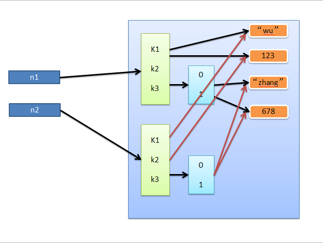 赋值,只是创建一个变量,该变量指向原来内存地址,如: