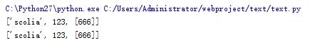a = ['scolia', 123, [], ] b = a[:] b[2].append(666) print a print b