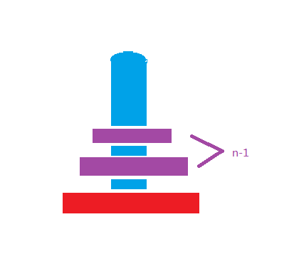 最后一步,就是刚才把a上面的n-1个都移动到了buffer上面,肯定要通过a移动到c才能完成整个汉诺塔的移动啊,于是最后一步自然是把刚才的n-1个通过a当缓冲区移动到c柱上.