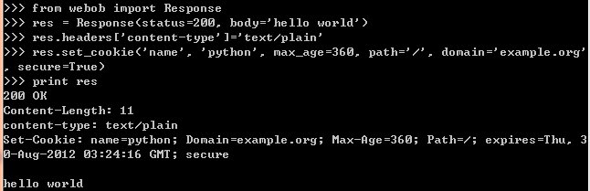 同时也可以通过webob模块中的Response对象来包装响应信息。