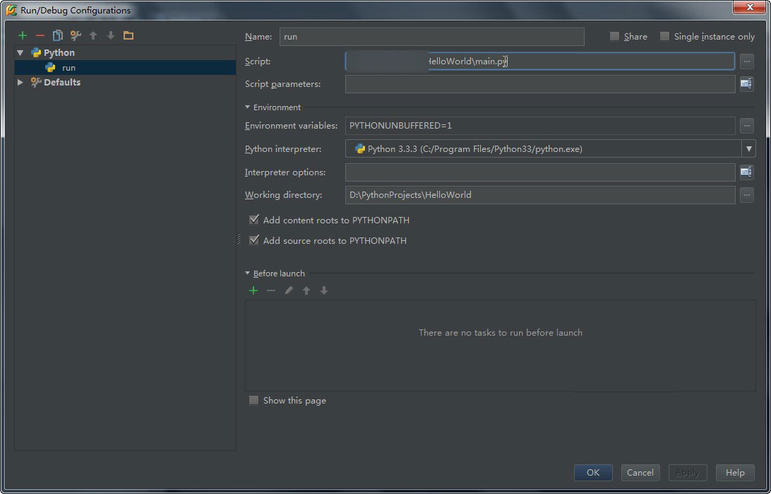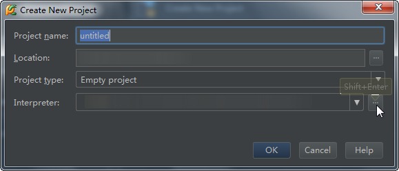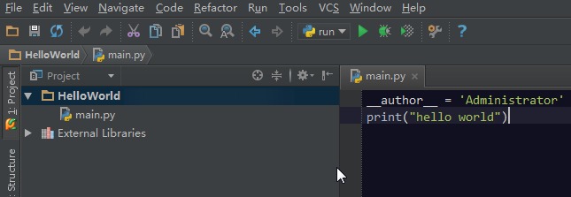 配置完成后填入项目路径新建一个项目,然后新建一个.py文件,写一句helloworld: