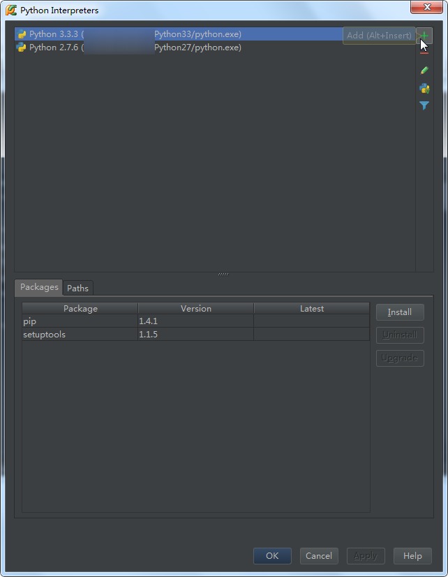通过+号增加一个解释器