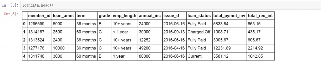 首先是准备工作,导入需要使用的库,读取并创建数据表取名为loandata。