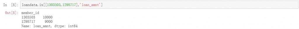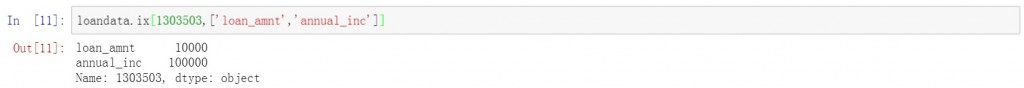 除了增加行的查询条件以外,还可以增加列的查询条件,下面的代码中查询了一个特定用户的贷款金额和年收入情况,结果中分别显示了这两个字段的结果。
