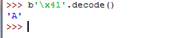 明白了这一点,同时我们知道UTF-8兼容ASCII,我们可以猜想大学时经常背诵的‘A'对应ASCII中的65,在这里是不是也能正确的decode出来呢。十进制的65转换成十六进制是41,我们尝试下: